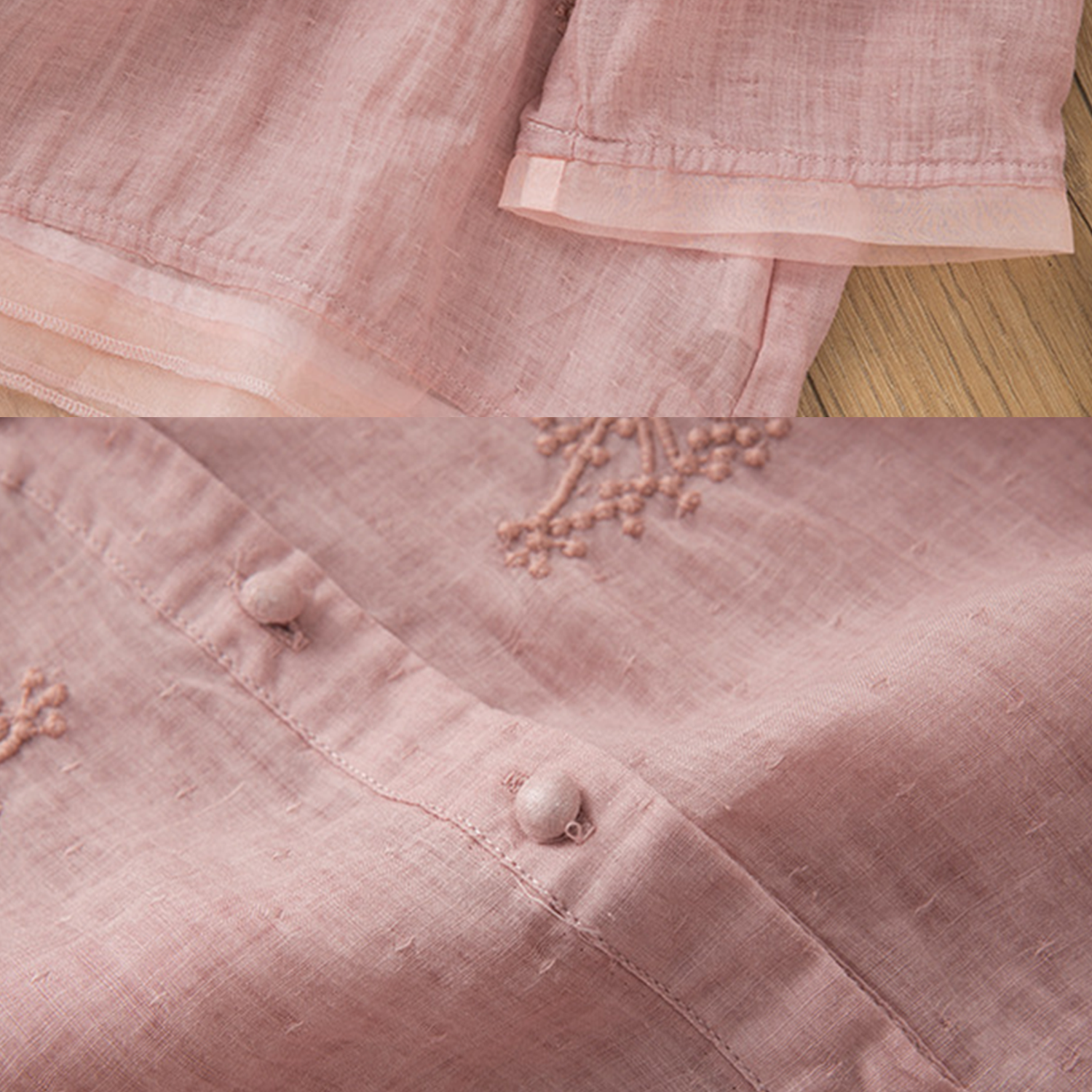 Crafted from breathable linen softened by time, this blouse features delicate tonal embroidery that catches the light with subtle grace. Its relaxed, oversized silhouette embodies effortless elegance — the kind of beauty that feels natural, timeless, and endlessly wearable.