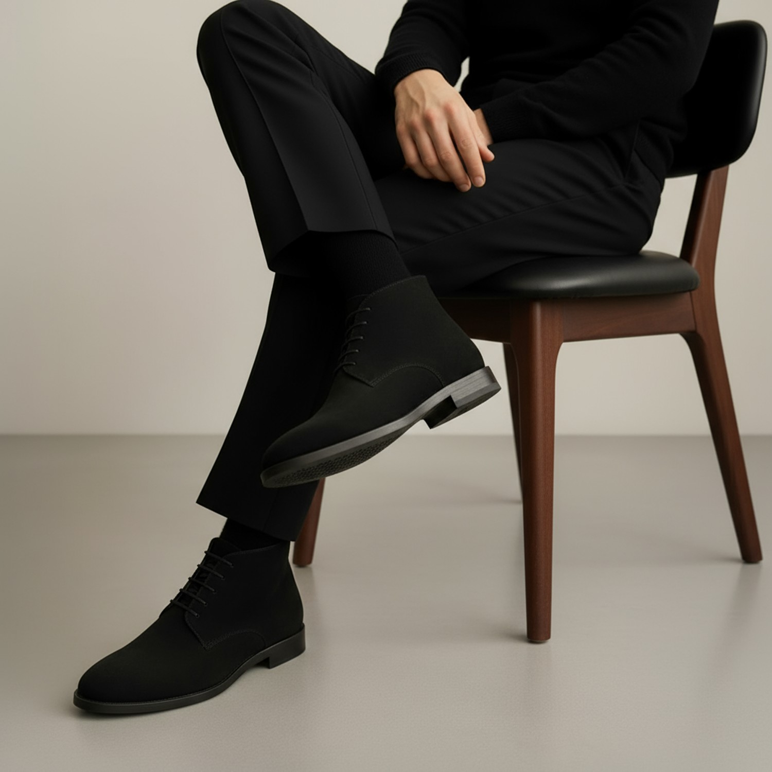 Crafted from rich, velvety suede, these chukka boots deliver understated versatility. The sleek, rounded silhouette pairs effortlessly with everything from tailored trousers to weekend denim. A cushioned insole keeps you comfortable all day, while a durable outsole provides a confident step from day to night.
