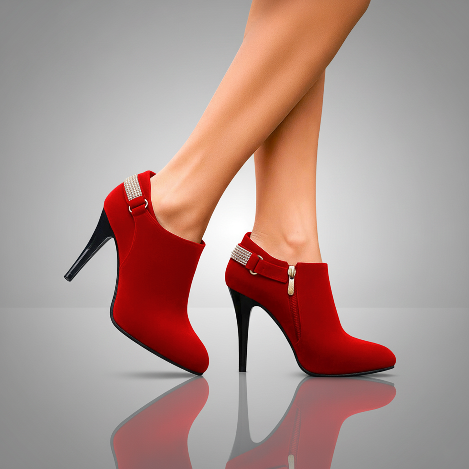 Back for the season with renewed sophistication, these velvet-suede heel boots deliver plush comfort and polished structure. Featuring cushioned insoles with supportive arch design, a sculpted heel for confident lift, and a designer-inspired rear strap that redefines everyday elegance.
