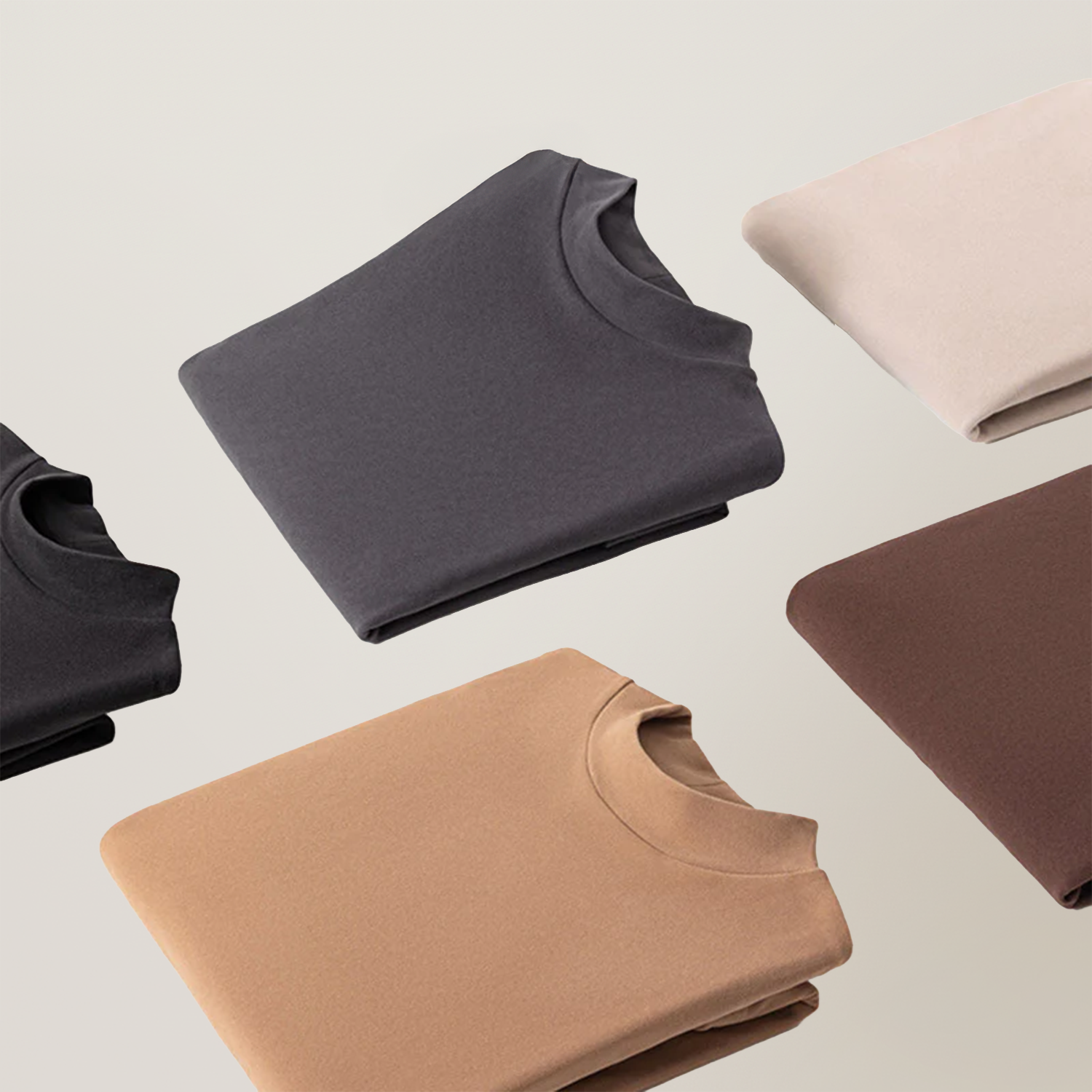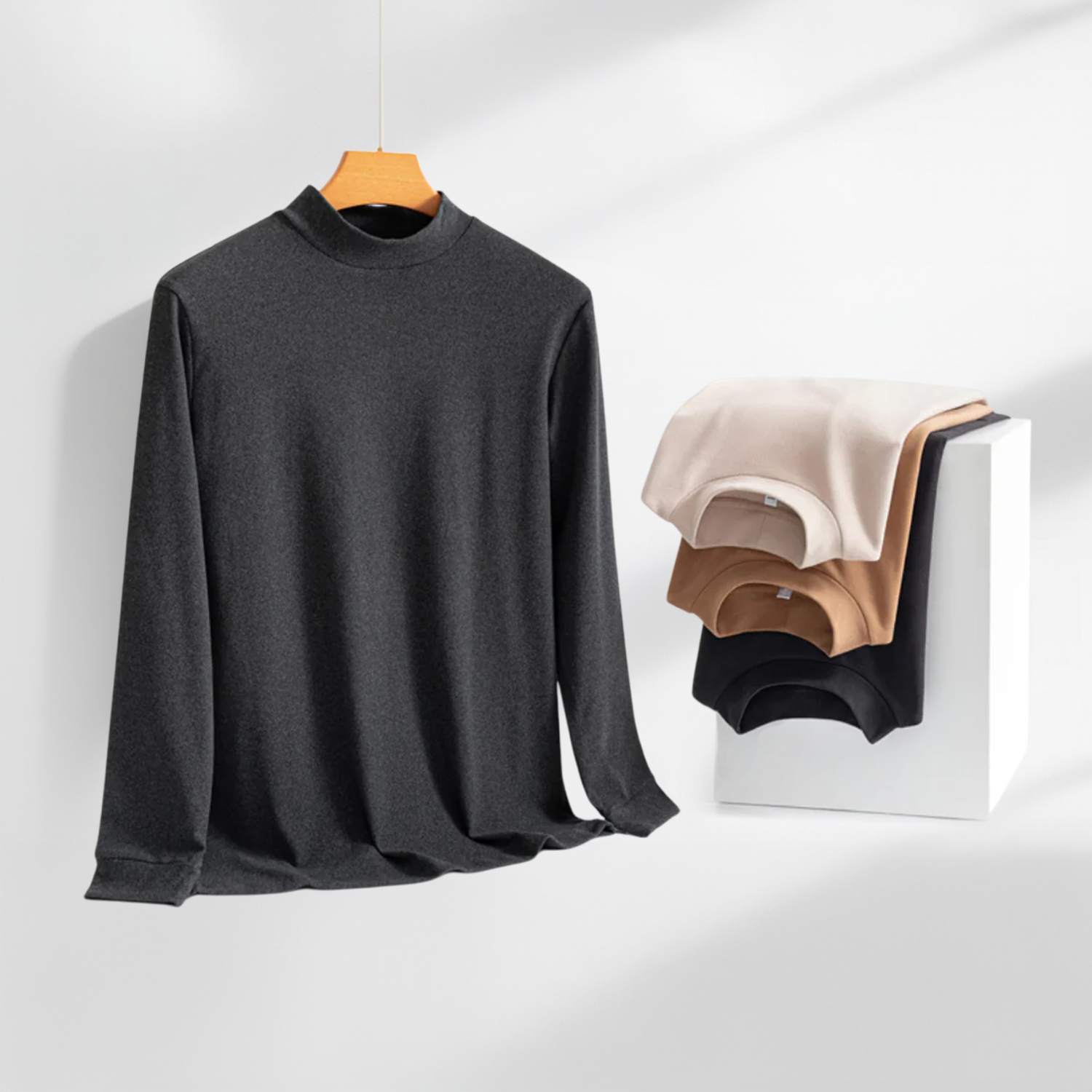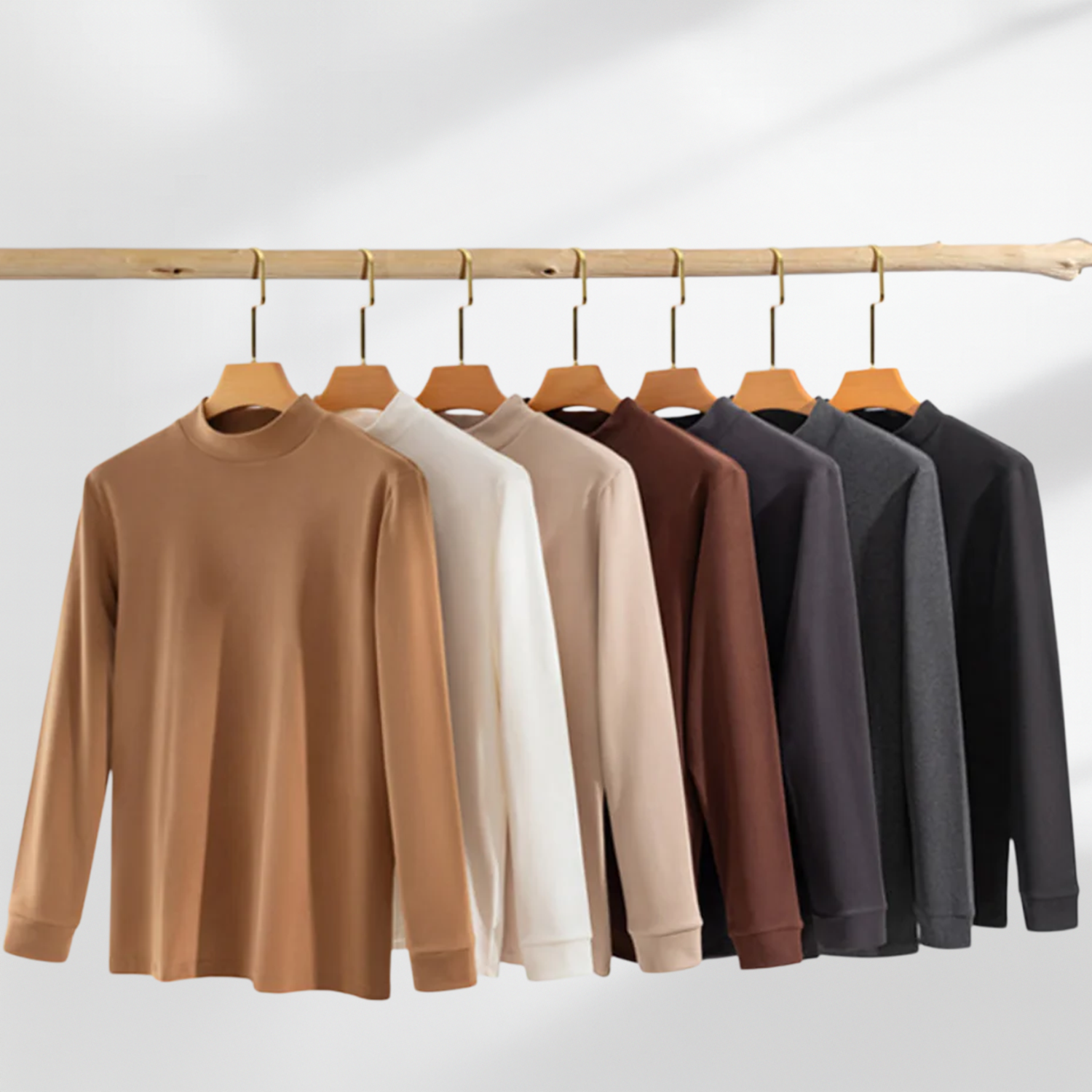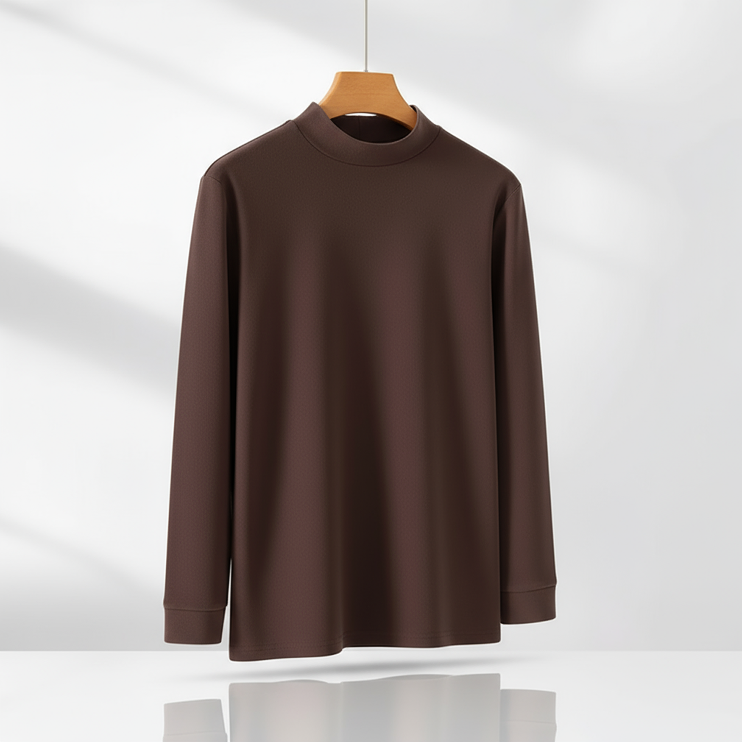 A second skin of comfort and intent. This long-sleeve is tailored from a buttery, double-knit fabric that moves fluidly with the body while holding its shape. Warm yet breathable, it defines quiet confidence — whether layered under structured outerwear or worn on its own in understated ease.