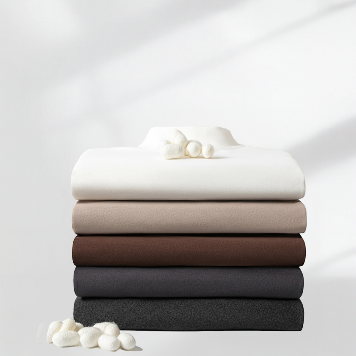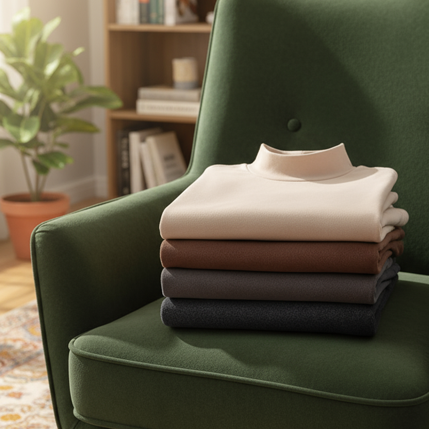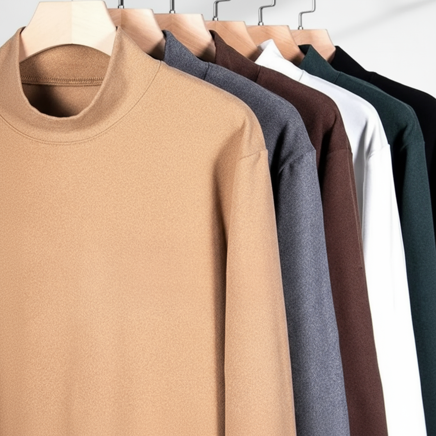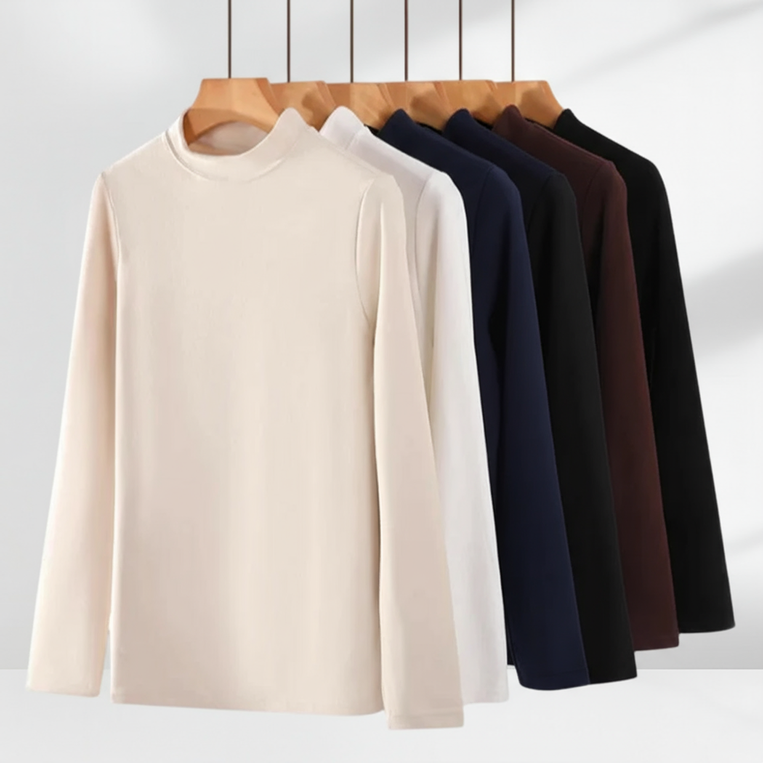 A second skin of comfort and intent. This long-sleeve is tailored from a buttery, double-knit fabric that moves fluidly with the body while holding its shape. Warm yet breathable, it defines quiet confidence — whether layered under structured outerwear or worn on its own in understated ease.