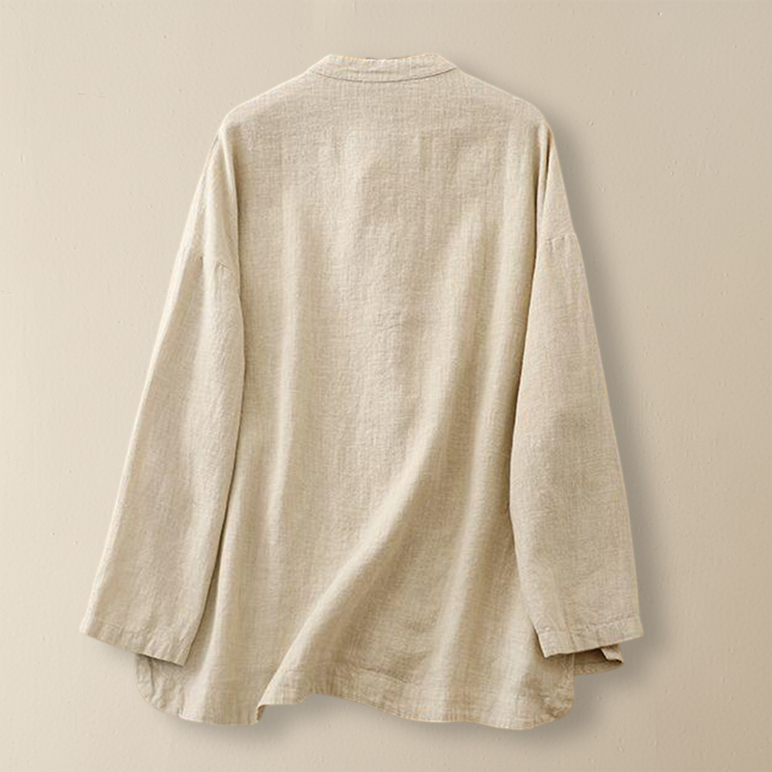 Tailored in soft gossamer linen, this shirt reinterprets a classic silhouette with modern restraint. Hand-tied closures and a fluid drape bring heritage and ease into quiet harmony — understated, refined, and effortlessly composed.